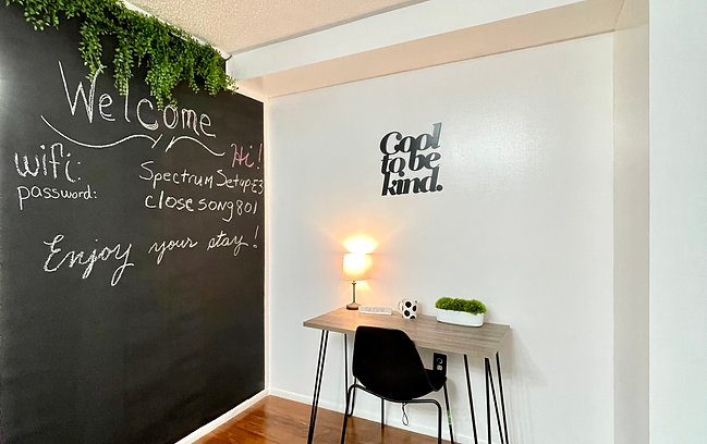 This breathtaking two bedroom apartment will wow you with its exclusive custom chalk wall! The kitchen is fully stocked with pots and pans and all the essentials to make you feel at home during your visit to NYC!